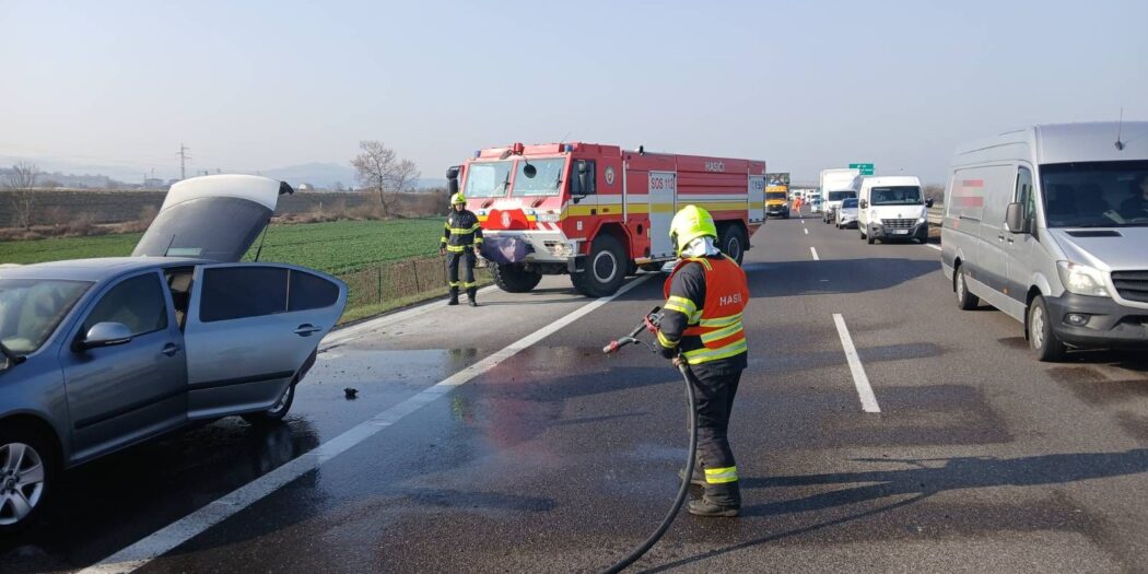 POŽIAR VOZIDLA NA DIAĽNICI D1 PRI DUBNICI NAD VÁHOM